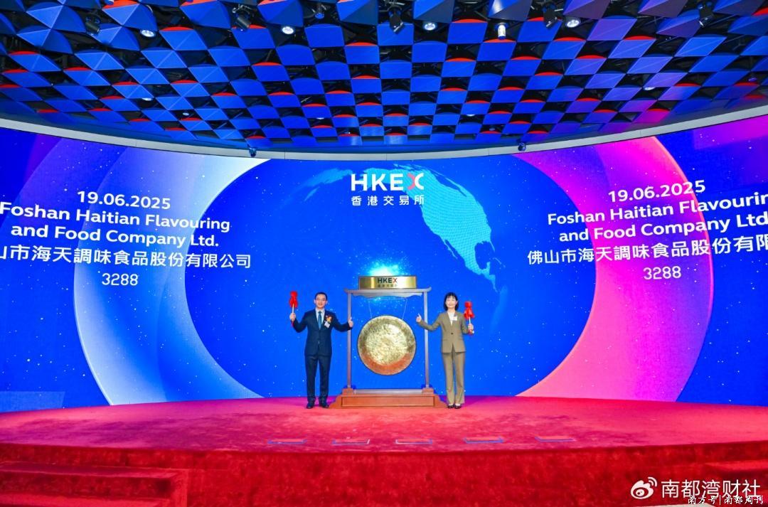6月19日,“酱油一哥”海天味业(03288)正式在香港敲钟上市。成为调味行业首家“A+H”股上市企业。海天味业每股发行价为36.3港元,募资净额为101亿港元(约合人民币92亿元),为2025年至今发行规模第二大的港股IPO。此次登陆H股,海天味业还引入了HHLRA、GIC、RBC、源峰基金、UBS AM、Boyu、HSG Growth、佛山发展等多家知名基石投资者。